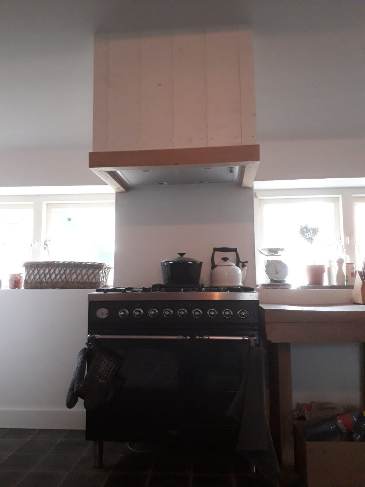 Handgemaakt keukenblok en klassieke ombouw afzuigkap, Boerderij Lekkerkerk